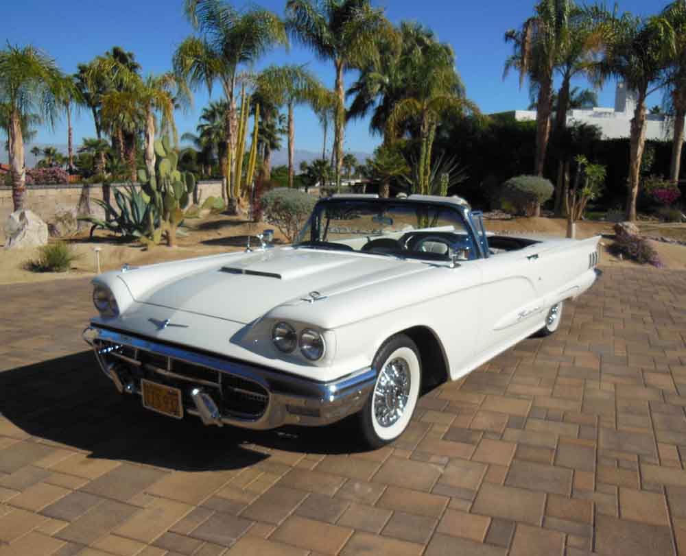 1960 Ford Thunderbird Convertible in Restored Condition; New Black Cloth Top; Unibody Construction provides that low-to-the- ground sleek look; Cruise-O-Matic transmission; Thunderbird 352 Special V-8 Engine; Power Steering; Power Windows; Excellent Chrome; New-Power Disc Brakes; New Black/White Interior; White Paint with Light Pearl; Wire Wheels; B. F. Goodrich Whitewall Radial Tires; After Market AM/FM Radio with C D Changer and iPod Connection