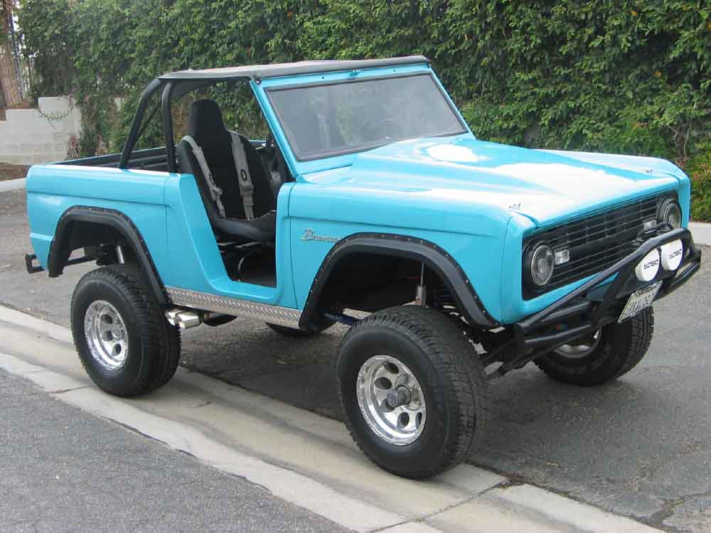 1968 ford bronco repainted to the original peacock blue, James duff and wild horses suspension lift, roadster kit with flares, full roll bar with bikini top, 16 inch wheels runs good and ready for fun.