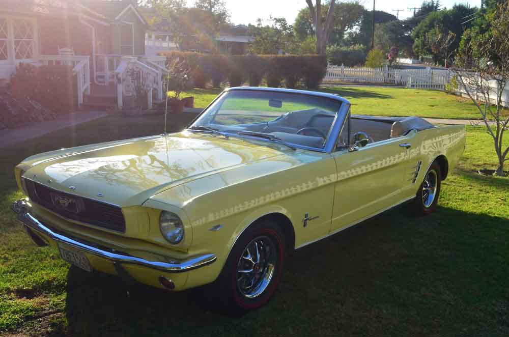 Built in San Jose and Sold new out of Los Angeles, this 71,400 original mile California beauty is stunning in its original Springtime Yellow with Parchment interior and Tan Heartz Canvas power top. Featuring: 289 V-8 (C Code) with Automatic, Factory Air Conditioning power steering and power disc brakes, center console, Factory Styled steel wheels and Dual redline radial tires This highly desirable Mustang has received a complete mechanical and cosmetic restoration and it looks, runs, drives and stops, better than new!