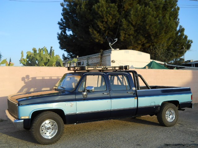 1986 Chevy Silverado 30 One Ton Crew Cab, Very Nice Rust Free California Blue Plate One Ton Chevy Crew Cab Pickup. 454 Big Block TH 400 Automatic Transmission With To be believed 103053 actual miles Fifth Wheel Set Up Tilt, Power Windows, Power Locks, Air conditioning, Billet Weld Wheels, Billet Phantom Grille, Five inch Dual Roll Bar, With Dick Cepek Fog Lights, Gun Rack and a Con Ferr Roof Rack Runs and Drives Great Will Pull Your Boat or Trailer With Ease