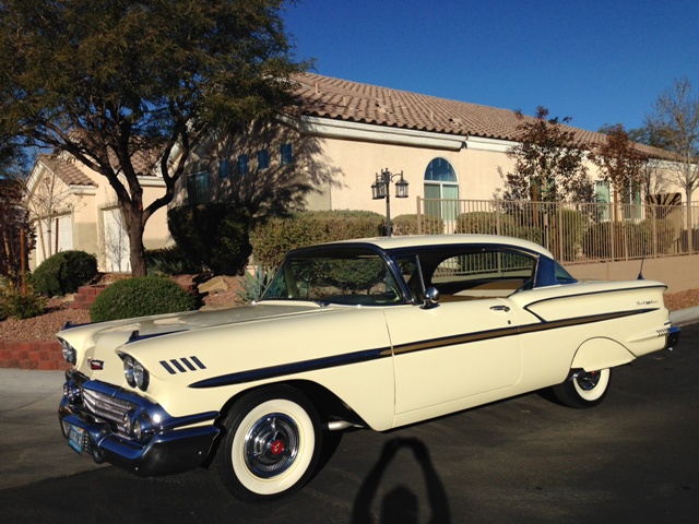 1958 Chevy 348 Tri Power Bel Air Hard Top. A Stunning Nut and Bolt Restoration!!! Super rare 348 tri power with automatic transmission, power steering, upgraded power disc brakes, it is a factory color combination. Very high quality restoration.
