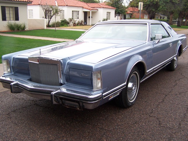 1979 Lincoln Continental Mark V – Givinchey Edition... During its production, the Mark V was offered in four customized Designer Editions the editions included Bill Blass, Cartier, Givenchy, and Pucci. Strictly a cosmetic upgrade, the Designer Editions each offered a custom set of exterior and interior colors and trim. On each edition, the vinyl roof was constructed of materials unique to that edition; in addition, Givenchy models were distinguished by their front-half vinyl roof configuration. All four versions were distinguished by trunk lid badging as well as badging on the opera windows. This is a 100% original Arizona Mark V with only 48K miles! The paint is a 9 of 10, and retains its original Crystal Blue Moondust Metallic shine. The interior is almost perfect, the Dark Crystal Blue Leather (with Broadlace- embroidered Givenchy "G" logo) is as sofy as it was in 1979. The car was just serviced to make her ready to drive and show. The Cartier clock works perfectly. All the gauges and options work. The 460 V8 and transmission drive as smooth a one would expect for a 48K mile vehicle.