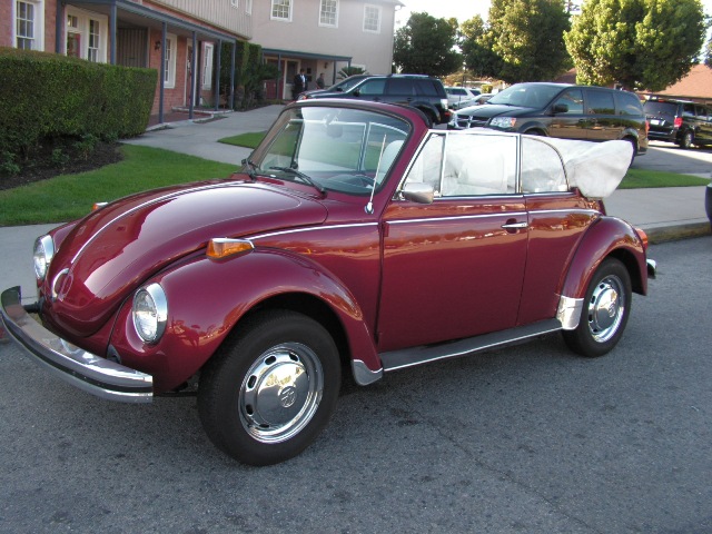 1978 VW Super Beetle Convertible, runs and drives extremely well, very good looking Beetle, amazingly striking color combo, Metallic Maroon on Alpine White top and interior, has been lightly restored years ago but has always been parked indoors, so it still looks really nice, great curb appeal ...