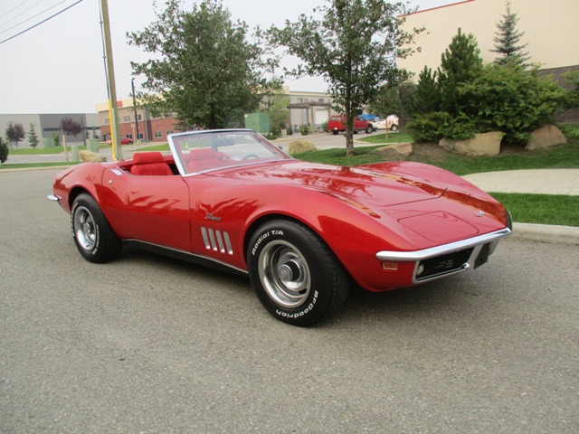 RED ON RED, STILL HAS THE ORIGINAL 350HP ENGINE, FULLY EQUIPPED WITH P/S, P/B, 4 TOPS AND 4 SPEED TRANS.
