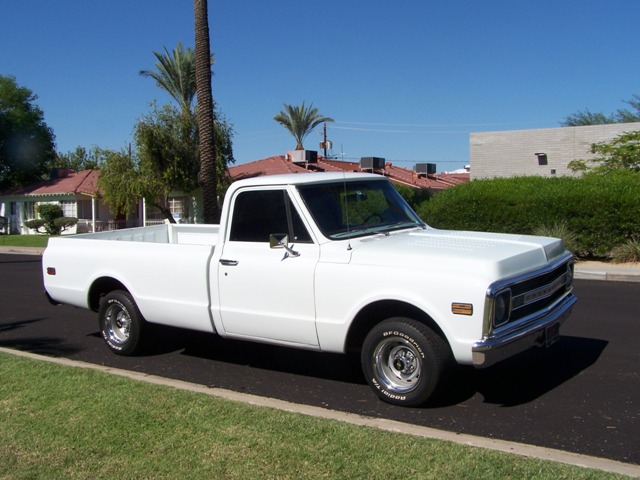 1969 Chevrolet C-10 Pickup... “The Ghost” – beautiful ghost white painted 1969 C10. Comes with a ton of options, 4-speed Hurst shifter, 350-V8, new 2014 Honda Odyssey Leather seats, new Grill package to give her the fresh SS look. BF Goodrich TA tires, on late model Chevy wheels, A/C, Stereo, TAC. She is all ready to show and GO.