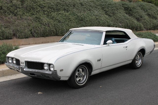 1969 Olds 442 Convertible, with matching numbers original 400 V-8 Engine, Turbo 400 Automatic transmission, from the same California owner since 1981, with all receipts back to ’81. It’s a real 442 , with proper vin numbers and trim codes. - 400 Oldsmobile V- 8 – Matching numbers original engine, Turbo 400 Automatic Transmission, Factory Air Conditioning, Power Front Disc Brakes, Power windows, Power Steering, Rallye Wheels, Bucket Seats and console, Remote Mirror, Power top mechanism, ...It’s in excellent condition, and ready to enjoy now!