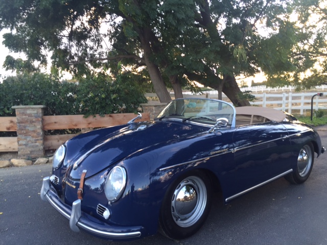 This is a very clean and well-built Porsche Speedster replica. The 1. 9L motor sounds great and really moves! The car has just shy of 10k miles and feels like new. Built on a VW pan and registered with a clean title as a 1958 model year. Featured in desirable Cobalt Blue exterior on a lite tan interior in combination with the soft-top, Speedster Instrument Set, Speedster side spears, Leather hood straps, Porsche emblem package, Chrome Speedster Mirrors, Bumper bar set front and rear, Chrome Speedster center fuel tank, 5 bolt Front Disk brakes, Rear drum brakes, 1915cc (105hp) Engine. Dual carbs 4-speed transmission, 185-65R15 Tires and finished with a Nardi wood steering wheel. This vehicle will be offered on the auction block approx. Saturday at 10:42.