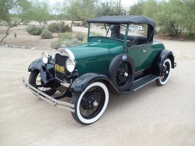 AN OLDER RESTORATION. ALL STEEL CAR, ALL OPTIONS INCLUDING DUAL SIDE MOUNTS, TRUNK RACK, CLOCK.