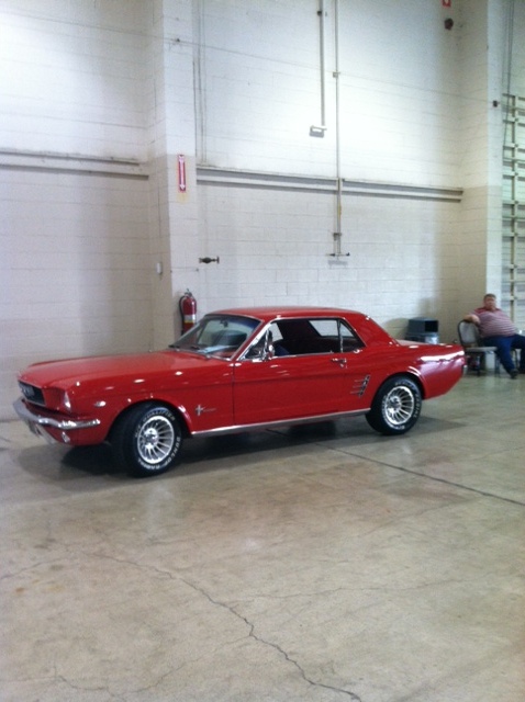 1966 Mustang coupe, it has had the same owner for 42 years,,,,1 repaint in original color, Candy Apple red, matching original color red interior, V-8 289 with automatic transmission, power steering,,,,center console, deluxe steering wheel, padded dash, lower rocker moldings, dual exhaust, and vintage mag wheels,,,runs great