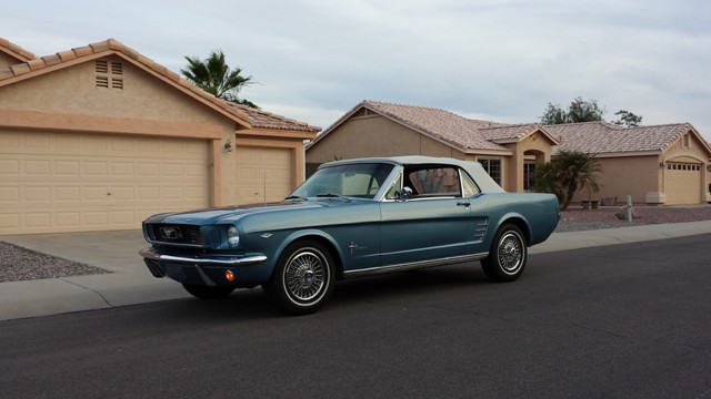 1966 Ford Mustang Custom Convertible Take a Arizona Car and then Restore it in 2012 in Gorgeous "Beemer Blue" Paint and the White Interior... 289 4 bbl V-8 Engine.... C-4 Automatic Transmission...Power Steering... Added Front Power Disc Brakes......AND ....ICE COLD Vintage AIR Conditioning... Some original Styled, Wire Wheel Covers, and Sally... says its time to Ride....