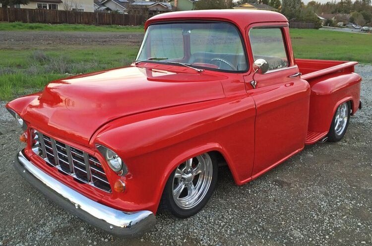 1955 Chevrolet Deluxe Big Back Window Step side pick up. Built from the frame up w/ 27,000 proven miles since completion. Powered by a small block 350 engine backed with a TH-350 trans. Chevelle rear end w/ parallel leafs. Mustang II independent air bagged front suspension w/ on-board compressor. Power rack & pinion steering w/ disc brakes. Billet Specialties rims w/ matching steering wheel. Lots of polished billet aluminum under the hood & inside. Block hugger headers w/ trick side exit exhaust. Relocated stainless steel fuel tank. Ididit Steering column, Autometer gauge cluster. Trick CD stacker sound system. All new glass, Wing window delete w/ power windows. Custom sculptured leather & tweed interior. Smoothed & shaved bed & tailgate w/ oak floor. Custom steel roll pan. A quality built truck that drives great & looks even better. Just placed at Sacramento Autorama two weeks ago.