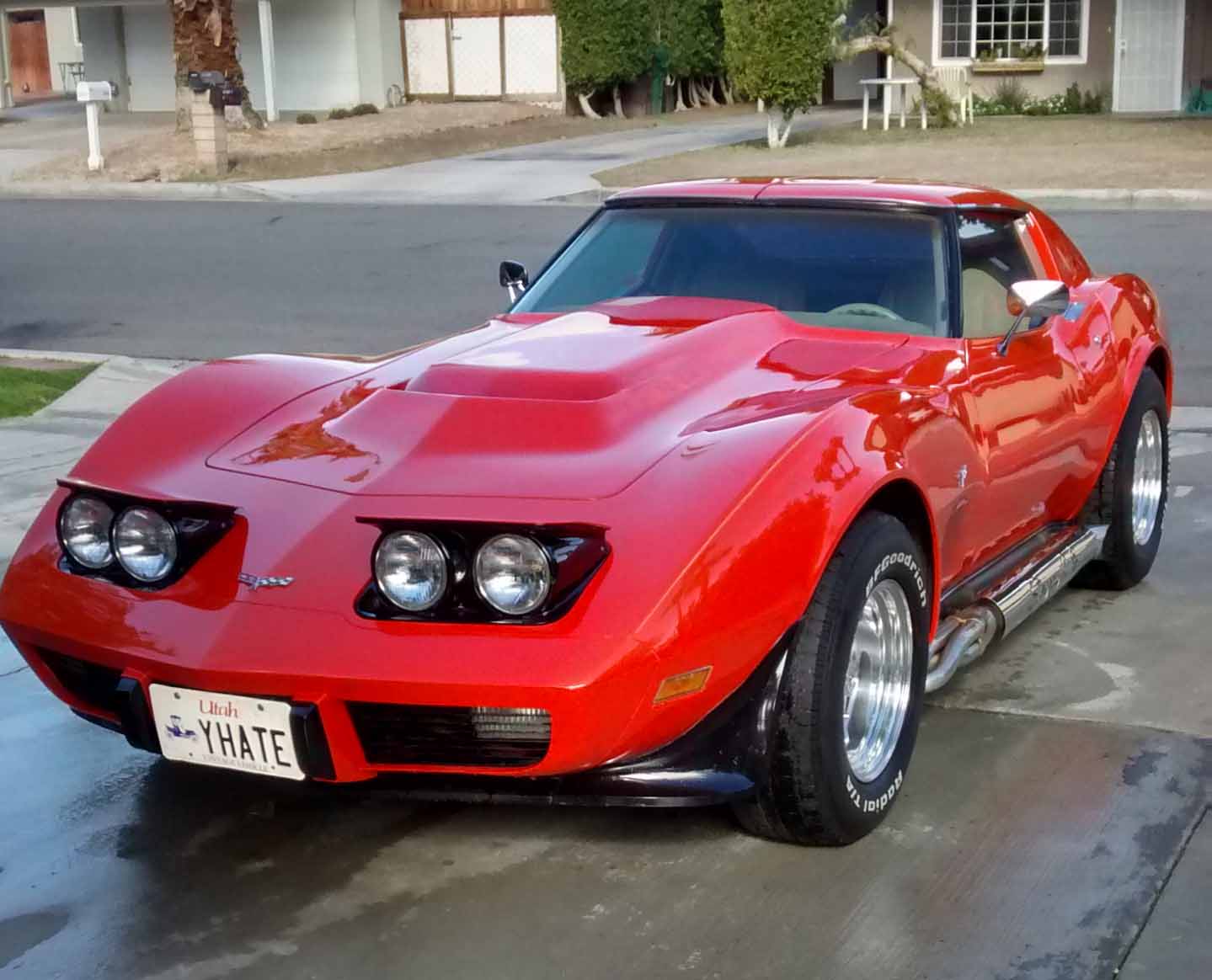 1977 Chevrolet Corvette - Less than two years ago this multi year frame off restoration was completed. It was a detailed job with lots of extras being done. This is a great car and fun to drive. Here are some of the highlights: • Everything underneath replaced not repaired. • New 350 engine with a flat tappet cam. • Custom wheels and tires • Custom hood • Custom paint job with flake, really pops in the sun. o Pinstriping on side and “fresh squeezed” on the rear. o Fade in paint on the hood and side vents. o Black paint inside headlights and tail lights. • All exterior lights except headlights switched to LED’s • Engine compartment has some chrome and orange paint touches. • After market air conditioning.