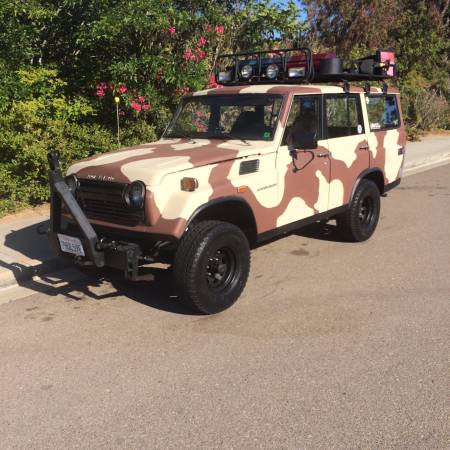 1974 LAND CRUISER RARE FJ55 - NEW DESERT CAMO PAINT, ORIGINAL DRIVE TRAIN, 31 INCH YOKOHAMA DIGGER TIRES, 6 CYLINDER-4 SPEED, NEW BRAKES-FRONT & REAR / INCLUDES LINES & WHEEL CYLINDERS, BLUE TOOTH STEREO, NEW STARTER, ALL GLASS EXCELLENT-REAR POWER WINDOW WORKS, LIFTED – RANCHO SUSPENSION, 944 PORSCHE SEATS W/SHEEPSKINS, AMMO CAN CONSOLE, ALL ORIGINAL TOOLS, NEW HEADLINER, ALL NEW WEATHER STRIPPING AROUND ALL 4 DOORS, REAR SEAT RECONDITION – ALL NEW, ALL ACCESSORIES INCLUDED, FRONT TOW BAR, HOOKS-FRONT/REAR, PORTABLE WINCH-FRONT/REAR, DEER WHISTLES, 30-GALLON OVERSIZE TANK, FULL RACK-LIGHT BAR (4 LIGHTS), POLICE LIGHTS-SIREN-CODE 3 & POLICE HORN.