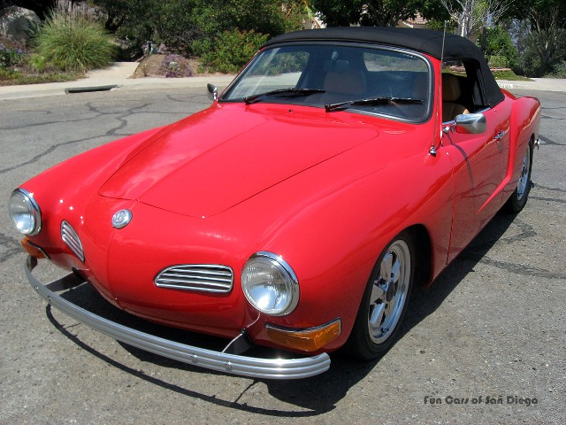 This near perfect 1972 Karmann Ghia Convertible comes out of a local private collection. Its owner wanted a perfect Karmann Ghia and spent years and close to $45,000 to make one. Winner of multiple awards at local and regional shows, you’d spend a long time and a lot of money to find one nicer than this. Numerous custom details make this car even more special. This car has been a California car its entire life, so rust has never been an issue. As you can see in the pictures, this Karmann Ghia is laser straight. The paint is phenomenal. The seat and door panels are done in custom leather and cost over $5,000 to do. The gauges are all VDO, including the clock, which keeps perfect time. The clutch, transmission and engine were all rebuilt or redone in the last 12 months. The 1600 puts out a stout 62hp. So, you’re not going to win many green light grand prixes, but it will easily cruise at 75 all day long. This car has no leaks. The engine, as seen in the pictures, is totally chromed out, including a chrome battery box. Braking is provided by discs at all corners. The wheels are period correct Fuchs from a Porsche. The Karmann Ghia has been lowered slightly and doing so improves the ride and cornering. This is a fun car to take up the twisties. The top is new and has a drop down glass rear window. Not shown in the pictures, the Karmann Ghia does have a bra to prevent rock chips and such. All of the glass is in near perfect condition. The tires are also new in the last two years and have plenty of tread. All fluids are fresh. Everything on the car works as it should, all lights, wipers (though you’re never driving it in the rain), turn signals, horn, windows, etc. The stereo rocks. The car sounds great and gets plenty of thumbs up and smart phone photos wherever it goes. If you’ve ever wanted a Karmann Ghia, this is your car. Yes, there are less expensive ones out there, but you’d be hard pressed to buy one and make it as nice as this one for what we anticipate it will sell for. In answer to the question, yes, this Karmann Ghia really is as nice as the pictures show.