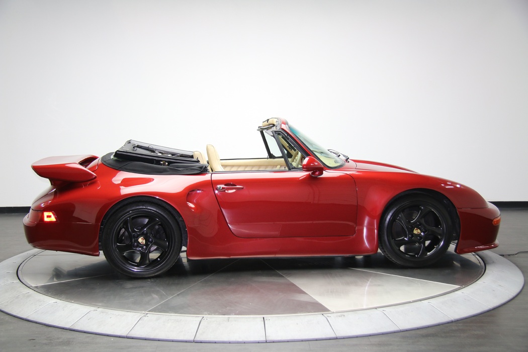 • This rare custom wide-bodied 1976 Porsche 911S Cabriolet by Strosek Design features a power convertible top, leather interior, and show-quality paint finish. It rides on 18-inch Turbo Twist wheels with Porsche crests and new Continental Extreme Contact tires with over 80 percent of their treads remaining. It is powered by a very strong 2.7-liter air-cooled flat 6-cylinder engine with 5- speed manual transmission. The list of reasons why driving enthusiasts love air-cooled Porsches is a long one, and for good reason. With the 911, Porsche set out to create a capable, durable and reliable sports car. To this day, there are few cars that deliver the visceral driving excitement of the Porsche 911. Very elegantly finished in Arena Red Metallic paint over a custom Tan leather interior, this unique ’76 model Porsche 911 boasts a professionally installed and very uncommon Strosek Design custom wide-body kit. The custom leather interior shows well with some visible signs of age. The interior also features a fully functional Strosek gauge cluster, billet shift knob and leather-trimmed dash. The Strosek custom wide-body cabriolet conversion was professionally installed at a cost of almost $22,000. It has excellent body panel alignment and fit and finish, and the power convertible top is in great shape with no damage. It also has a correct Strosek rear deck spoiler. A significant mechanical service was performed and this car is ready for the road. It has receipts, a summary of work performed, full gasket replacement, air flow sensor, updated idler arms, tensioner update kit, and more. This ’76 Porsche 911 Cabriolet will inspire confidence in the driver. It is extremely well- sorted-out and in excellent mechanical condition, having received a high degree of care over the years. It sings beautifully with a signature Porsche air-cooled sound that will tantalize even the most discerning driver. This is a fantastic and unique vintage Porsche with custom touches that delivers!