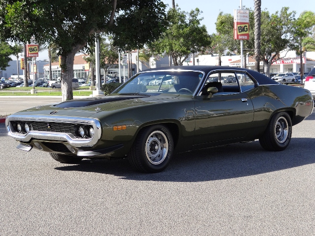 Rotisserie-restored during 2011 and 2012, this 1971 Road Runner is an original RM23 Air Grabber car. Featuring laser-perfect body lines, it is finished in the original F8 Sherwood Green with a black vinyl top, dual mirrors, optional blackout hood, Go Wing and front chin spoilers. The professionally blueprinted 452 cu. in. stroker is equipped with a 6-Pack manifold with Demon Six Shooter carbs and drives a pistol grip Brewers 833 4-speed with a McCloud clutch, driving a 3.54 Dana 60 with Sure Grip. Other upgrades include MSD ignition and a Comp Cam. Complete specs come with the car. Suspension upgrades include a complete Firm Feel suspension, close-ratio power steering box with close-ratio idler arm, sway bars front and rear, Bilstein shocks, stock front disc brakes, 11? rear drums, and subframe connectors. The car is lowered approximately 1?. Black bucket seat interior, dash with tach. Air Grabber is complete and works. This car began as a stock restoration and turned into a complete resto- mod. The car was raced by the original owner in the Northwest for many years before being taken off the road in the early 90s. This car has taken Best in Class at several well-known Mopar events including the Spring Fling. The car is awesome to drive and has the torque of a Hemi. Here is your chance to own a real cool classic Mopar!