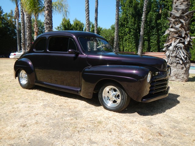1947 Ford Street rod, a very nice fresh example finished in Dark Metallic plum the paint is very nice, it has great depth and as very straight, Frenched headlights and taillights, shaved and has remote door poppers, polished wheels, new tires, disc brake conversion, Brand new rebuilt 428 engine balanced and blueprinted with receipt just done in beginning of 2016 for a cost of $6000 by Bobs racing motors in Burbank Ca not including the labor to pull or re install it, rebuilt C6 Automatic transmission, shifts very nice Ford 9inch rear, dual exhaust, suspension is very nice and drives wonderful. Upgraded MSD, Aluminum radiator, cooling fan, and car has been re wired. Interior is black suede, front and rear seats and door panels, power windows, power seat, tilt wheel, upgraded gauges, new carpet, headliner and trunk. This is a great driving and looking car!