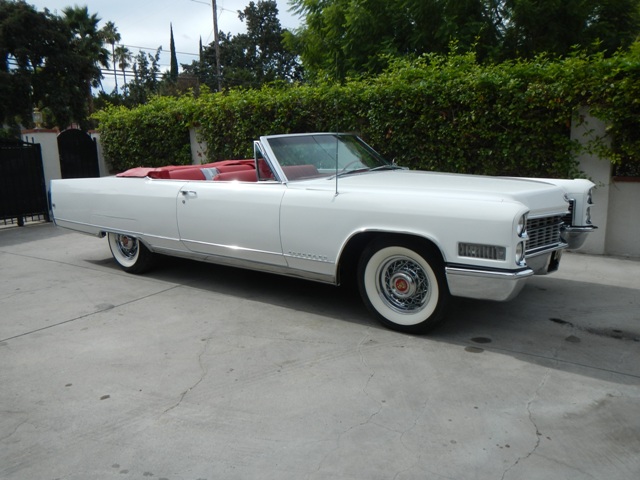 1966 Cadillac Eldorado Convertible, believed to be a 42000 mile example, 1966 is the last year for the RWD Eldorado Convertible, one of 2250 cars built for the world, and how many left? This original California car is free from any rust issues, prior of present, original floors, trunk and sheet metal. Repainted to its original color of white this car received a bare metal respray, everything was removed prior to painting and the paint is a two stage and had a cost of over $9000.00, all rubber weather stripping was replaced, chrome was re plated, A new full leather interior installed, wood redone, new carpet, top, rear window, top motor as well as both rams also replaced, all power items such as seats, windows including power wing vent windows have been serviced and gears replaced, as well as power door locks, Refurbished and updated AC system is blowing cold, Wheel vintique wire wheels (real) on wide white vintage tires. This car is Complete with all of its original trim in excellent shape. The original 429 Motor runs smooth, a major service just performed, original carb rebuilt, steering box, power steering pump, new hoses and belts, Trans also serviced as well brakes and front end, this is a great driving Eldorado that is loaded with all options: twilight senenal, cruise control, 6 way power seat, tilt and telescoping steering wheel , AM FM, seatbelts, and AC the same ownership since 1972.