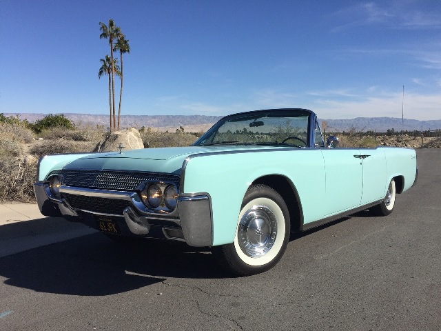 This 1961 Lincoln Continental 4-Door convertible is simply stunning in its original color of Turquoise Mist. One of just 2,857 convertibles Lincoln manufactured for the 1961 Model Year, the car’s odometer shows just under 35,000 miles. The 430 CID – 300 HP – 8 Cylinder OHV engine has been serviced regularly by the classic car specialists at Palm Springs’ own OMAG Automotive since 2012, and the current owners - since 2009 - have books and records dating back to the 1960’s. This car has appeared in multiple invitation-only shows including the Palos Verdes Concours d’Elegance, the Fallbrook Vintage Car Show and the Great Autos of Yesteryear Concours, where it won First in Class and Third in the “Best of Show” category. Purchased new from Carlisle Porter Motor Company in Clearwater, Florida on August 22, 1961, this iconic example of mid- century luxury motoring includes the following features and recent mechanical upgrades: • Convertible top hydraulic upgrade and regular maintenance by John Cashman (a/k/a “The Lincoln Man”) • Main and rod bearings, and 3-piece timing chain set replacement • New rear main seal • New engine block freeze plugs • New gaskets on oil pan, timing cover and valley pan • Rebuilt steering box • New Edelbrock carburetor • Rebuilt heater unit • Replaced leaf spring bushings • OEM-spec stainless steel exhaust system Also included is the original Lincoln Continental owner’s manual. All maintenance and ownership records are available for viewing.