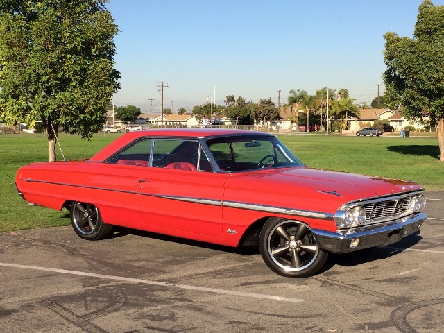 1964 Ford Galaxie XL500 2dr fastback - This is a very nicely restored car with factory 390, automatic trans, Borgeson power steering, Rangoon Red exterior and red interior. Comes from dry Amarillo, Texas, with no rust. Bucket seats, console, floor shift, new interior. New heads, Flowmaster exhaust, Mustang Boss 18" wheels, new chrome and much more. Runs and drives beautiful and will get you thumbs up everywhere!
