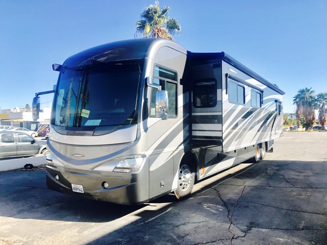 THIS IS A 2010 MODEL, BOUGHT AT $400,000 NEW. THIS HAS A FULL BATH WITH SHOWER AND A HALF BATH, FULL CLOSET, 4 TELEVISIONS AND ONE IS OUTSIDE, FULL SIZE DOUBLE DOOR FRIDGE WITH WATER AND ICE ON DOOR, WASHER AND DRYER, DISHWASHER, STOVE AND A CONVECTION OVEN, TWO SOFAS WITH PULL OUT BEDS, KING SIZE BED IN BACK, THIS RECREATIONAL VEHICLE HAS ALL THE CREATURE COMFORTS OF HOME, 30 FOOT SLIDE OUT ON DRIVER SIDE AND 2 ADDITIONAL SLIDE OUTS ON PASSENGER SIDE, AND ALREADY IS SET UP TO PULL A SECOND VEHICLE BEHIND