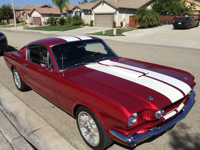 This is a 1965 ford mustang fastback long term owner approx. 15 years completely restored by the current owner built 302 by Van Gordon racing approx. 340bhp, world class 5 speed transmission with center force clutch , 9 inch rear with 3.50 track lock, 4 piston front disc brakes, Shelby styling Lazer red with white stripes, 17 inch 10 spoke wheels, flo-fit front seats with matching rear seat for comfort, Shelby tach pod and gauges, this car is well sorted out and runs and drives very good