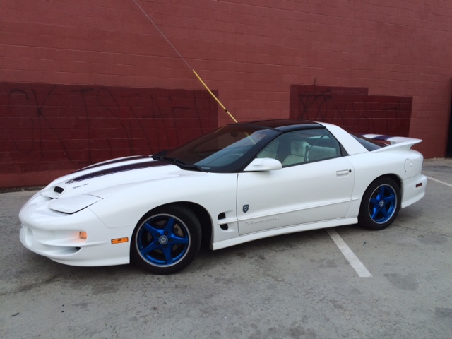 1999 Pontiac Trans Am 30th anniversary model. These cars were all numbered, and this is no. 314 out of only 1400 made. All wheel disc brakes, LS1 motor, automatic, T-tops, white with factory white leather interior and blue anodized wheels. Original owners manual and window sticker. Very fast and smooth driving car. These cars are up and coming collectors, be sure to jump on the band wagon!