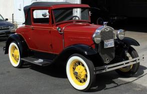 Restored Model A sport coupe with rumble seat first introduced in December 1927 to replace the Model T. It was designed by Henry Fords's son, Edsel. Equipped with an 201 cubic inch L-head 4 cylinder engine with a three speed manual transmission. They came standard with 4 wheel mechanical brakes, hydraulic shocks, starter, windshield wipers, dash lights, mirror, gas gauge, and tools. Bumpers were a $15.00 option. Nostalgic antique fun!