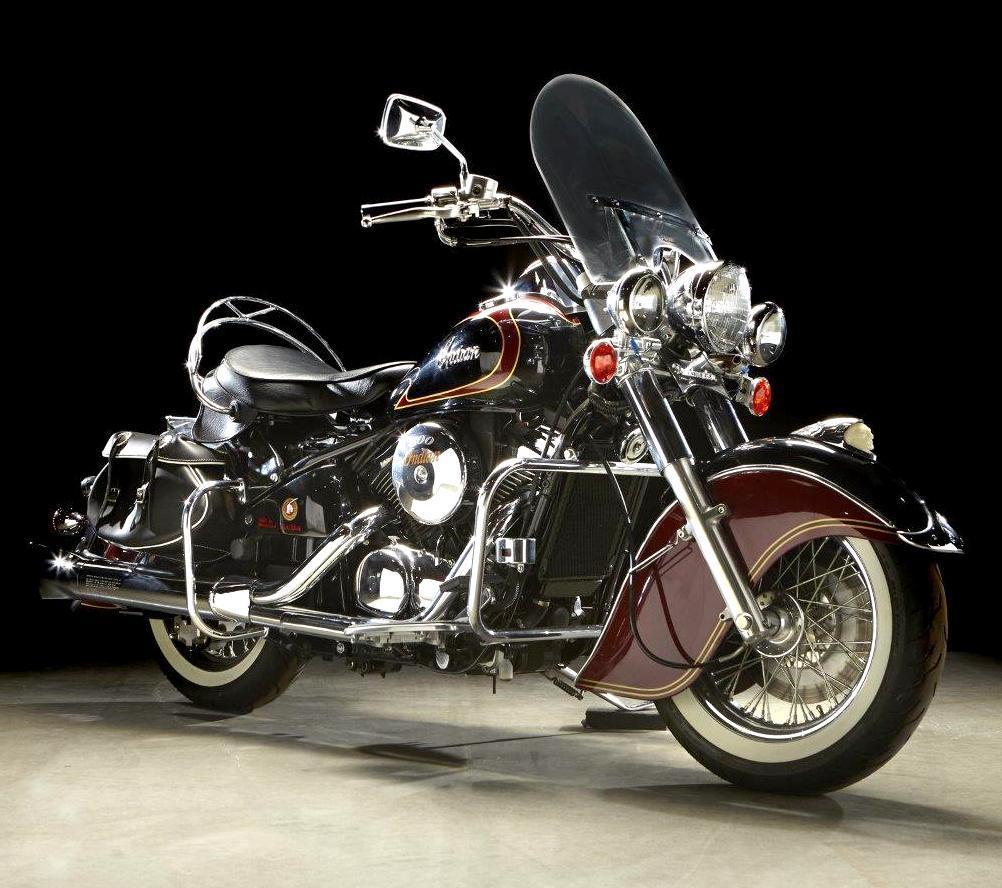 2005 Kawasaki Drifter 800 Indian Chief Replica only 350 original miles Retro custom cruiser by ‘Mr. Indian’ Bob Stark This is perhaps the most authentic Kawasaki Drifter Indian Chief replica ever built. The Drifter series, sold by Kawasaki from 1999-2006 in 800 and 1500cc displacements, used modern liquid-cooled, fuel- injected cruiser V-twin engines cloaked in skirted fenders and other retro accoutrements to come up with very convincing 1940s Chief lookalikes. This one goes several steps farther, thanks to one of the great names in the vintage Indian world. Known as ‘Mr. Indian,’ Bob Stark was the son of an old-time Indian dealer, and from high school until his death in 2015 rode an Indian almost daily. His shop, Starklite Cycles in Perris, California, turned out world-class restorations, carried an extensive line of mail-order parts and housed Stark’s collection of 50-plus Indians. Mr. Stark’s modifications to this Drifter 800 were simple but effective – a scalloped paint accent and Indian badges on the gas tank, extra pinstriping, a dual ‘Chum-Me’ seat with chromed grab rail, leather saddlebags embossed with the Indian logo, retro headlight & running lights, luggage rack, vintage Roadmaster headlight mount and, of course, a lighted chief’s head on the front fender. Chromed front & rear crash bars, wide whitewall tires and rear running lights add to the effect. Finishing touch is the old-time Indian dealer logo and Bob Stark’s name hand-painted on the right side panel.