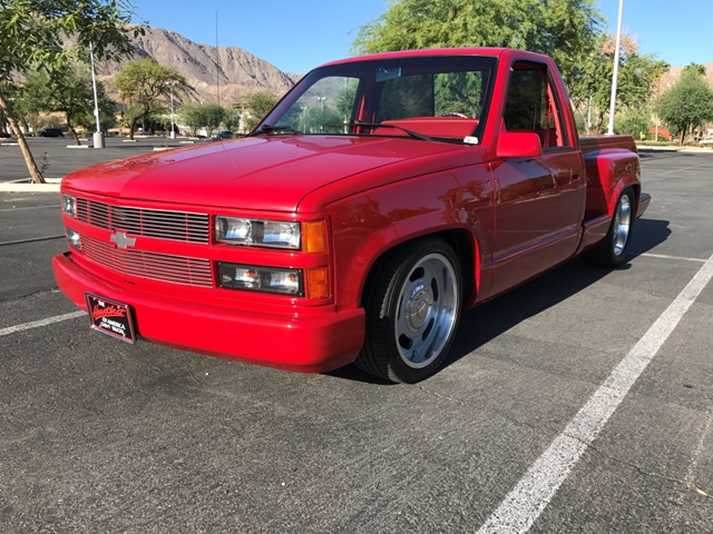 1988 CHEVROLET STEPSIDE - SHOW QUALITY CUSTOM BUILD, OVER $40,000 IN MODIFICATIONS & PERFORMANCE UPGRADES. PRO- BUILT 383 STROKER SMALL BLOCK WITH MODIFIED HEADS, COMP ROLLER CAM, WEILAND INTAKE & HOLLEY 750 CARB. MSD IGNITION, FLOTEC COATED HEADERS WITH 3 INCH EXHAUST & FLOWMASTER MUFFLERS. MAKING ABOUT 400HP. 700R4 AUTO TRANSMISSION WITH B&M SHIFT KIT AND FLOOR MOUNTED SHIFTER. 3.73 YUKON REAR GEARS WITH POSI. POWER STEERING, POWER FRONT DISC BRAKES, DRUMS IN THE REAR. POWER WINDOWS, A/C, CUSTOM BUILT HIGH END SOUND SYSTEM, CUSTOM INTERIOR WITH OSTRICH INLAYS, SUEDE HEADLINER, BILLET STEERING WHEEL, CUSTOM GAUGE CLUSTER WITH AUTOMETER GAUGES, BILLET GRILL, CUSTOM HEADLIGHTS & TURN SIGNALS, MONO CHROMATIC PAINT, FLUSH MOUNTED HARD TONNEAU COVER. PROFESSIONALLY LOWERED WITH DROPPED SPINDLES. C-NOTCHED REAR FRAME, 18 INCH MAG RALLYE WHEELS WITH GOODYEAR EAGLE TIRES. - THIS IS A SOLID RUST FREE TRUCK, ALWAYS A RED TRUCK. RUNS VERY STRONG, DRIVES STRAIGHT, SITS RIGHT AND GETS LOTS OF LOOKS!