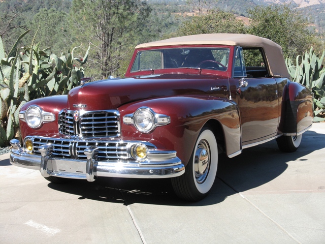 1948 LINCOLN CONTINENTAL CABRIOLET CONVERTIBLE - This true classic Lincoln Continental Cabriolet Convertible is believed to have been purchased new by the late movie actress Lauren Bacall and driven frequently during her marriage to Humphrey Bogart. Truly a pleasure to drive with updated suspension and drive train. Equipped with a 365cd overhead valve engine, 3 speed automatic transmission, late model differential and suspension, dual exhaust, power disc brakes, power steering, electric window conversion, electric top conversion, 12 volt system with alternator, and new white wall tires. Great Palm Springs cruiser!