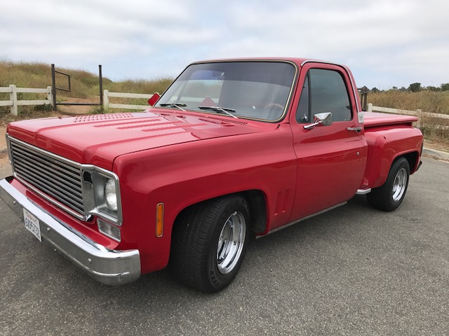 1976 Chevrolet 1/2 Ton Stepside-Recently rebuilt 350ci V-8 engine, R700 automatic, PS, PB, PW, cold A/C, tilt, etc. Deep dish chrome wheels with new highway radial tires. New oak bed, plexiglass tailgate, hinged bed cover, new interior, great chrome, many small custom features. Odometer shows 19,200 miles, but I am sure it has turned over once. 1st place truck show winner June, 2017. Runs like a scalded cat.