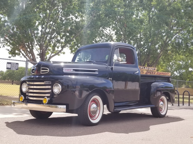 FRAME OFF RESTORATION - ALL STEEL ORIGINAL TRUCK. A FAT FENDERED FORD TRUCK WITH A REAL 50'S HOTROD THEME. 4 SPEED MANUAL TRANSMISSION, NEW WHITE WALL TIRES, JET BLACK MIRROR FINISH PAINT, CUSTOM PIN STRIPING, OAK SHOW BED, UPGRADED TWO TONE INTERIOR.