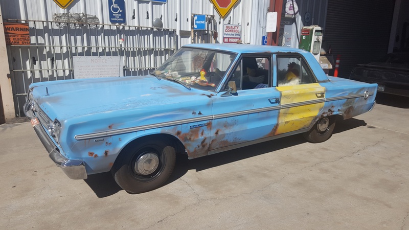 THE CAR WAS ORIGINALLY A CLEAN WHITE CAR, MARK LUEK, A WELL KNOWN ARTIST, PINSTRIPER WAS HIRED TO MAKE IT LOOK LIKE THE FOSTER FARMS 'CHICKEN CAR' . THIS IS A REPLICA OF THE FAMOPUS FOSTER FARMS CHICKEN CAR. COMES WITH ALL THE PROPS, CHICKEN SUITS INCLUDED. DON'T LET THE APPEARANCE FOOL YOU, THIS IS A CLEAN, SOLID CAR AND THE INTERIOR IS IN PERFECT SHAPE.