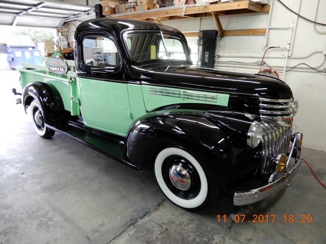 THE PREVIOUS OWNER WAS 84 YEARS OLD. THIS TRUCK RECEIVED A COMPLETE PHOTO DOCUMENTED BODY OFF RESTORATION. THE TRUCK IS IN EXCELLENT CONDITION WITH NEW OAK BED WITH MATCHING RAILS, A BRAND NEW INTERIOR, NEW CHROME AND NEW TIRES.
