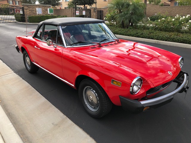 This is a 1976 Fiat 124 spider 5 speed. This beauty is an awesome little car to drive, handles great and looks sharp. Great working condition and interior and roof are brand new and looks GREAT. Everything mechanically is working and operating correctly. It is believed to be a 2 owner local California car. New breaks, rotors, pads, hoses original hub caps and tires are in good condition. Master cylinder new oil pan gaskets, oil change and new filter. Replaced with new engine mounts,new battery, new battery case. New trunk carpet. Replaced cam shaft and housing, timing belt. New alternator and air pump and belts. New upper and lower hoses. Complete tune up. New upper and lower control bars and bushings. New shocks and ball joints. New tie rods. New catalytic converter. Air pump belt, alternator belt. Runs great. This car will be offered for auction on 11.18 at 5.15 PM