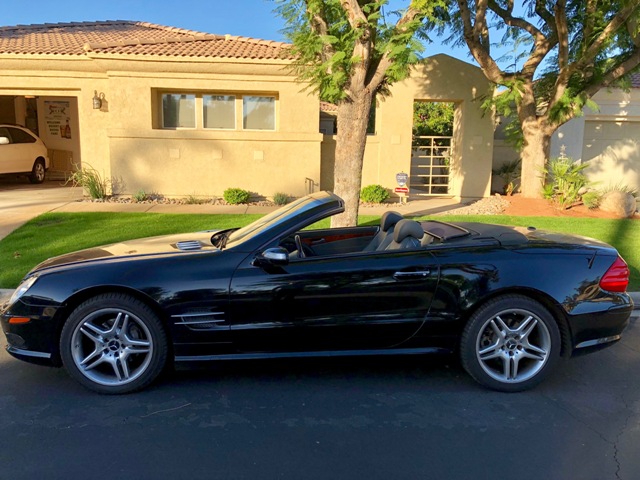 2006 SL 500. Black with grey interior. Under 65,000 miles. Bought new in Eugene, Oregon and pampered in Eugene and Portland until fall 2016 been in Palm Springs since. Two owners. Loaded with options including seat massagers, ABC suspension, leather heated and cooled seats, nav, wind deflector and more. Well maintained, newer tires, other than a minor occasional pop in a rear strut top all runs very well.