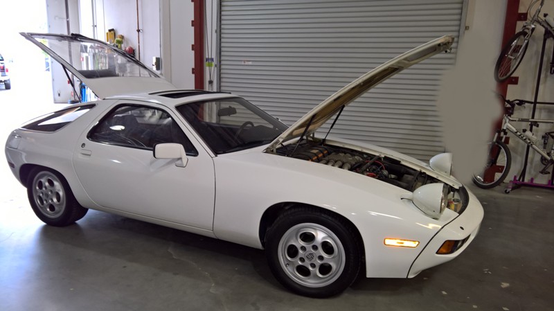 1980 Porsche 928 5-speed. Terrific early 928 with a 5-speed. She wears her original color of Grand Prix White over Dark Blue leather interior. These early 5-speed 928s are a bit rare becoming more and more desirable and appreciated. Her 4.7 liter all aluminum V8 fires up instantly and provides excellent power while going through the gears. She wears the original and correct 16- inch phone dial wheels with plenty of good rubber. The original Blaupunkt stereo is included but there is currently a later model stereo installed, along with an included CD changer. The original tool kit is all intact. Weather stripping is all good. The navy blue interior is clean, with no damage to the leather seats. The car has 110,000 miles, and the timing belt and water pump were replaced less than 3,000 miles ago. She was serviced less than 200 miles ago with synthetic engine and transmission oil. All the instruments and electrics work as they should, even the sunroof and cruise control. The A/C blows very cold. Included with the sale is a complete set of factory 928 service manuals, as well as a folder of service history and some spare parts, including a Y-pipe straight exhaust. Since these photos were taken a new hood pad was installed and she has been fully professionally detailed. She is ready to be driven and enjoyed. These have been rapidly escalating in value and clean ones in original condition are getting more and more difficult to find.