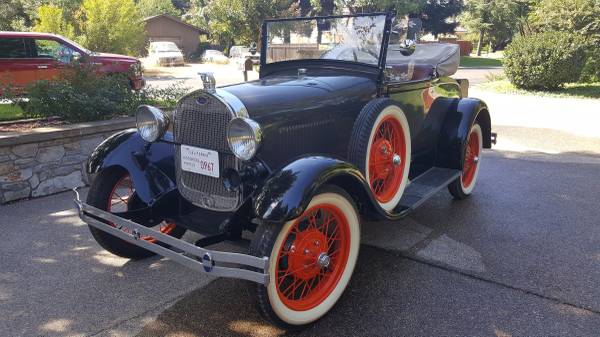Incredible 1928 Ford Model A Roadster. Less than 500 miles on the frame-up restoration, completely rebuilt engine and transmission. Everything is BRAND NEW except for the rear end. The engine is bored .040 over with electronic ignition, a high compression head, six brand new wheels that have been powder coated and six new 21" wide whitewall Firestone tires. The car shows just 44,066 miles. Believed to be original mileage. The vehicle is incredible and runs and drives great!