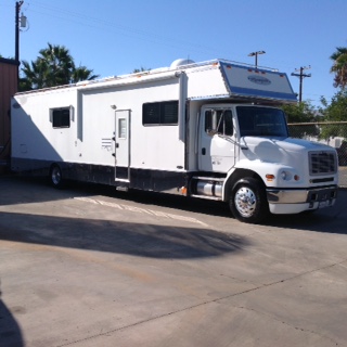 FL 112, GARAGE UNIT 2410, 450 HP MERCEDES 12.6 LITER TURBO CHARGED DIESEL, OVER 1550 LBS OF TORQUE. 10 SPEED ALLISON AUTO SHIFT TRANSMISSION WITH CLUTCH, AIR RIDE SUSPENSION, AIR BRAKES, 45 FT OVERALL LENGTH, 120 GALLONS OF FUEL 2 EACH 60 GALLONS, 1600 LBS LIFT GATE, 200 GALLONS OF FRESH WATER, 60 GALLONS OF GREY WATER, 60 GALLONS BLACK WATER, 4 LEG AUTO LEVELING JACKS, 7500 KW DIESEL, EXTERIOR SHOWER