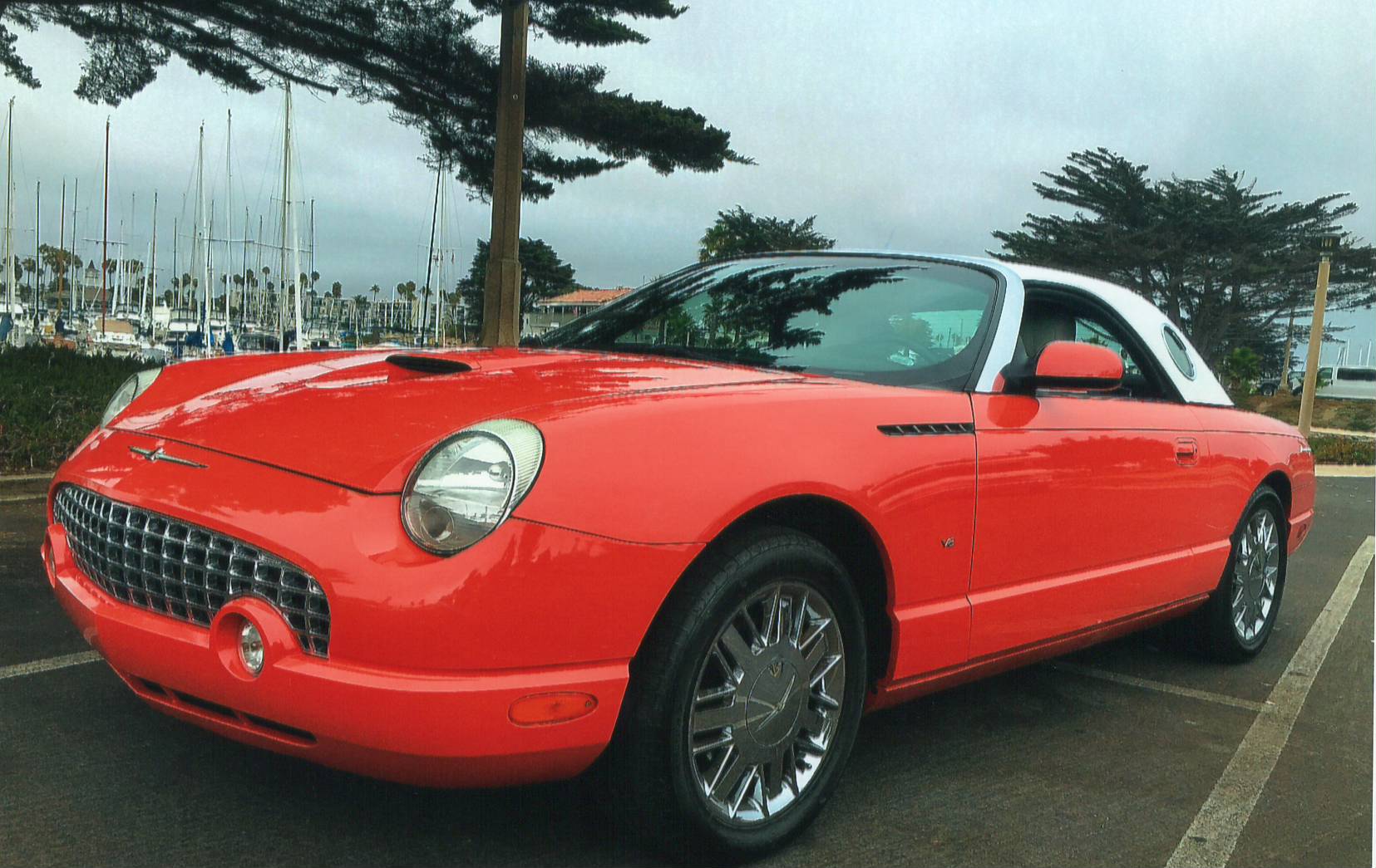 This 2003 T-Bird is a limited edition “007” model, #251 of 700 made to commemorate the T-Bird driven by Hale Berry in the James Bond movie “Die Another Day”. It was originally purchased by a lady in Laguna Niguel CA. in 2003 at a cost of $43,995 (see window sticker) and driven by her until 2018 when I purchased it. The car has been religiously maintained and garaged by her with all service records and receipts from new. The car runs and drives excellently with recent new radial tires, new A/C compressor and struts $1,747 (done by previous owner) and complete front suspension, transmission service and misc. by me for $2,430 (see receipts). This car has had no accidents and comes with a recent clean Car Fax. Special “007” features include exclusive Sunset Coral and white exterior colors with “007” only 21 spoke chrome/aluminum wheels, special white leather seats & two tone black and white dash and door panels along with special “007” aluminum trim and badging. In addition, the car is equipped with dual –zone climate controlled A/C (ice cold), dual heated power seats, all power inc. rack & pinion power steering, 4 wheel power disc brakes (pads are good), power windows, power tilt/telescoping wheel, 6 disc Audiophile premium sound system, 3.9 V/8 with 280 horsepower and 5 speed automatic overdrive. Car comes with removable hardtop (inc. tote) and power soft top as well as a car cover and 2 sets of floor mats, 2 remotes, owner’s manual, brochure & CD.