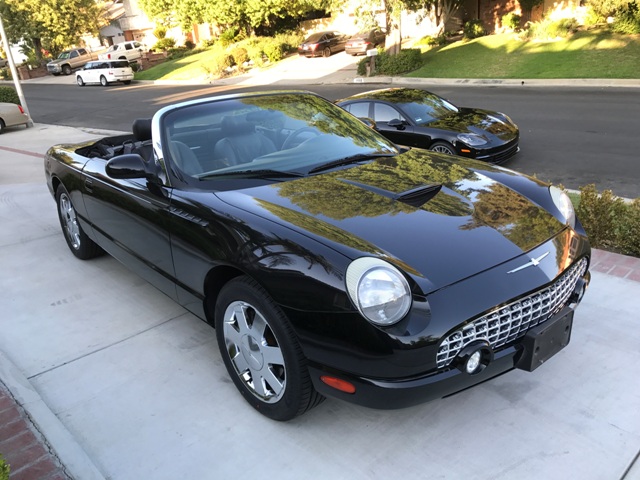 2002 Ford Thunderbird Convertible with actual 41k miles, rare jet black on black leather interior, both soft and hard tops, runs and drives wonderfully, brand new tires installed 220 miles ago over factory high polished 17" wheels, practically still new, books and factory alarm, low mileage T-Birds are becoming hard to find....
