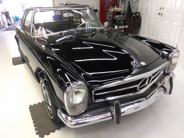 1964 Mercedes Benz 230 SL Convertible, Incredible "One Owner" Factory Black Drop top, Completely Stock ( Inline 6 Cyl Engine/ 4 Speed Transmission) with both Soft and Hard top. One repaint, Leather Interior, Beautiful Chrome and Stainless, always garaged and still drives like new! The Best of the Best!