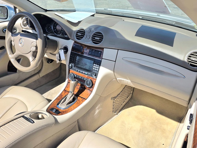 The 2008 Mercedes CLK550 Convertible is powered by a 5.5-liter V8 engine producing 382 horsepower and 391 lb-ft of torque, paired with a 7-speed automatic transmission, and is a rear-wheel-drive vehicle. Key features include heated leather seats, a Harman Kardon sound system, and a soft-top convertible roof that can be operated remotely. It seats four passengers. A grom module was added for hands free phone/blue tooth. Car purchased in Florida, has Massachusetts title but has never seen snow.