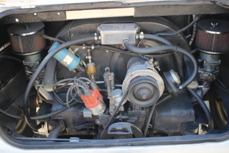 Fresh paint, cream white · Black interior · Black soft top/Bikini top · Manual 4 speed transmission · Dual carburetors · 2017cc motor 78.4x99.5 · 8.5:1 compression · DMS 78.4 crank · H-beam rods · 90.5 Mahle pistons and cylinders · Engle FK8 cam · 40x35.5 big valve heads · 1:4 solid shaft rockers · Deep sump pan · Aluminum case · Hi Torque Bosch starter · Steel wheels · Recent extensive maintenance