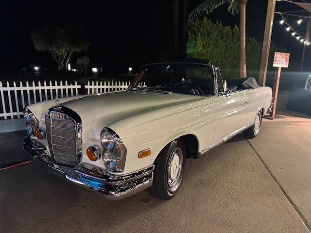 1970 Mercedes Benz 280 SE featured and beautiful classic white on a beautiful marina, blue leather interior, power windows, air conditioning, automatic transmission, local California car.