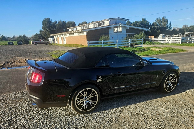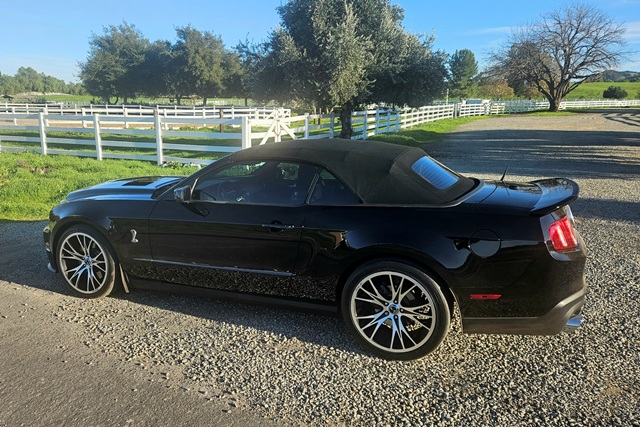2012 FORD MUSTANG SHELBY GT500 CONVERTIBLE...Only 13,326 original miles! Finished in triple black. Has 550hp factory supercharged 5.4 liter V8 engine and 6 speed manual transmission. Fully loaded with SVT performance package, Brembo brakes, leather Recaro seats, Shaker Audio system, navigation etc...Has $3,000 Borla exhaust and the car was just serviced at Lake Elsinore Ford