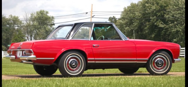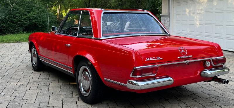 This beautiful Mercedes Benz 230SL received a high quality repaint a few years ago. Always maintained and has both hard and soft tops.