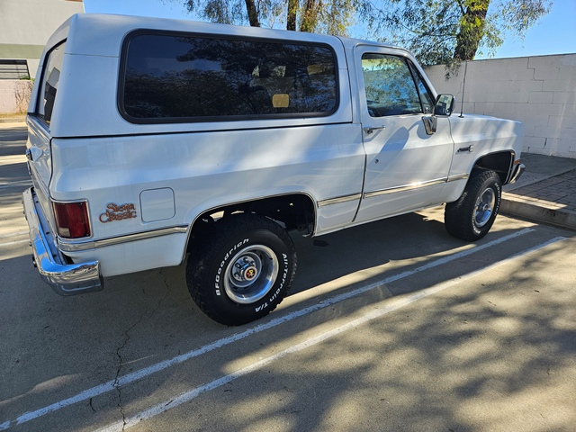 1988 GMC FULL SIZE JIMMY SIERRA CLASSIC 4X4, ALL ORIGINAL INSIDE AND OUT WITH A FEW LIGHT TOUCH UPS. CALIFORNIA TRUCK SINCE NEW. 5.7 LITER V8 FACTORY FUEL INJECTION, AUTOMATIC OVERDRIVE AND EVERY AVAILABLE OPTION, FACTORY AIR CONDITIONING FULL POWER EVERYTHING WORKS AS IT SHOULD, ORIGINAL SPARE TIRE, WHEEL AND CARPET COVER, ORIGINAL GM RUBBER FLOOR MATS. COMPLETE RECENT SERVICE, NEW BRAKES. THIS IS A FINE EXAMPLE OF AN UNMOLESTED FULL-SIZE JIMMY NEVER OFF ROAD OR ABUSED, NO RUST SO-CALIFORNIA OWNED SINCE NEW. ORIGINAL OWNER WAS THE OWNER OF CRESTVIEW CADILLAC IN WEST COVINA CA. THIS IS A NICE SOLID DRIVING HARD TO FIND CLASSIC JIMMY SQUARE BODY. INCLUDES ALL ORIGINAL OWNERS MANUAL, BOOKSD AND ORIGINAL DELIVERY FOLDER.