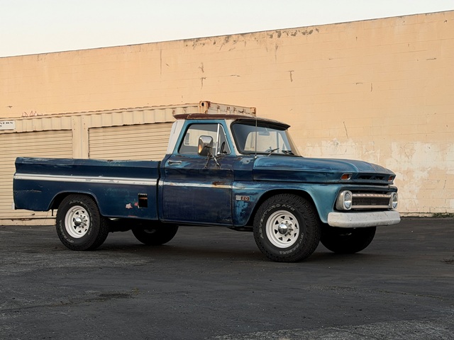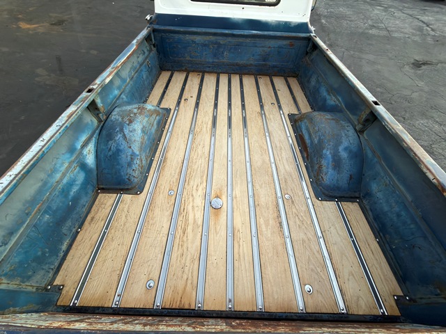 Owner purchased as a retirement passion project and has been meticulous in restoring it to it's patina'd glory with a complete refresh under the hood. Has rebuilt engine and transmission, new bed wood, new suspension, front disc brake conversion, new power steering, new wheels and tires, new exterior lights, new vinyl floors and cloth headliner, new radio and speakers, new a/c, new gauges, new steering wheel and aux tank in the rear.